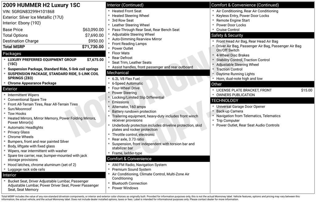 - Vehicle Name: HUMMER H2