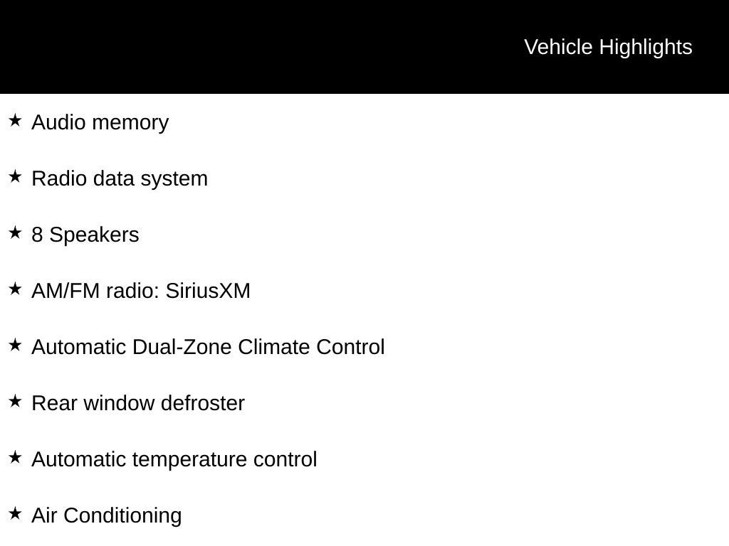 - Seats, front bucket includes 8-way power driver seat adjuster