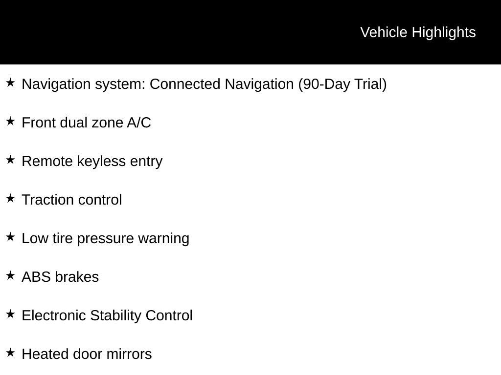 - 4-Wheel Disc Brakes w/4-Wheel ABS, Front And Rear Vented Discs, Brake Assist, Hill Hold Control and Electric Parking Brake