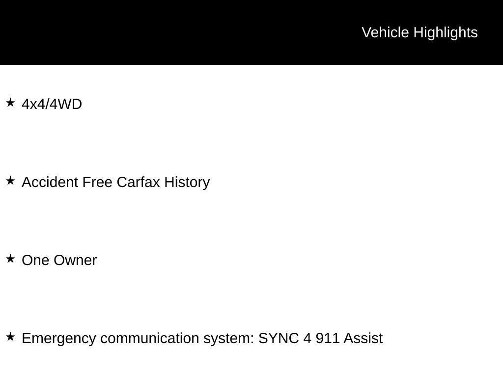 Elevate your driving experience with the SYNC 4 infotainment system, featuring an 8-inch touchscreen, wireless phone connectivity, and enhanced voice recognition. Stay connected with the FordPass app and enjoy a complimentary 90-day trial of navigation services.