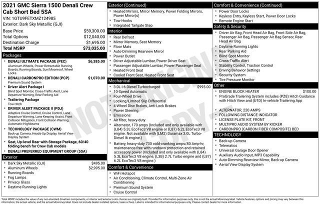 2021 GMC Sierra 1500 Denali 4WD 10-Speed Automatic 3.0L I6