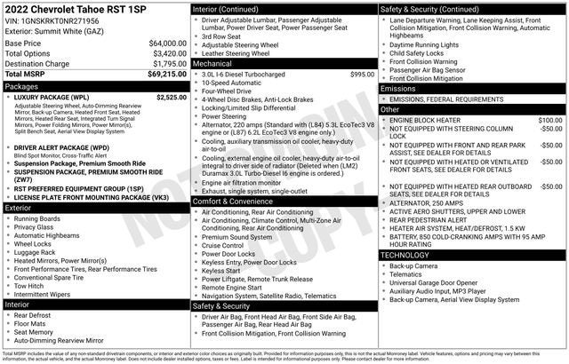 Whether you're embarking on a family adventure, hauling heavy loads, or simply seeking a luxurious and capable daily driver, this 2022 Chevrolet Tahoe RST is the perfect choice. Experience the power, comfort, and convenience that this exceptional SUV has to offer. Contact us today to schedule a test drive and discover why this Tahoe RST is the perfect fit for your lifestyle.